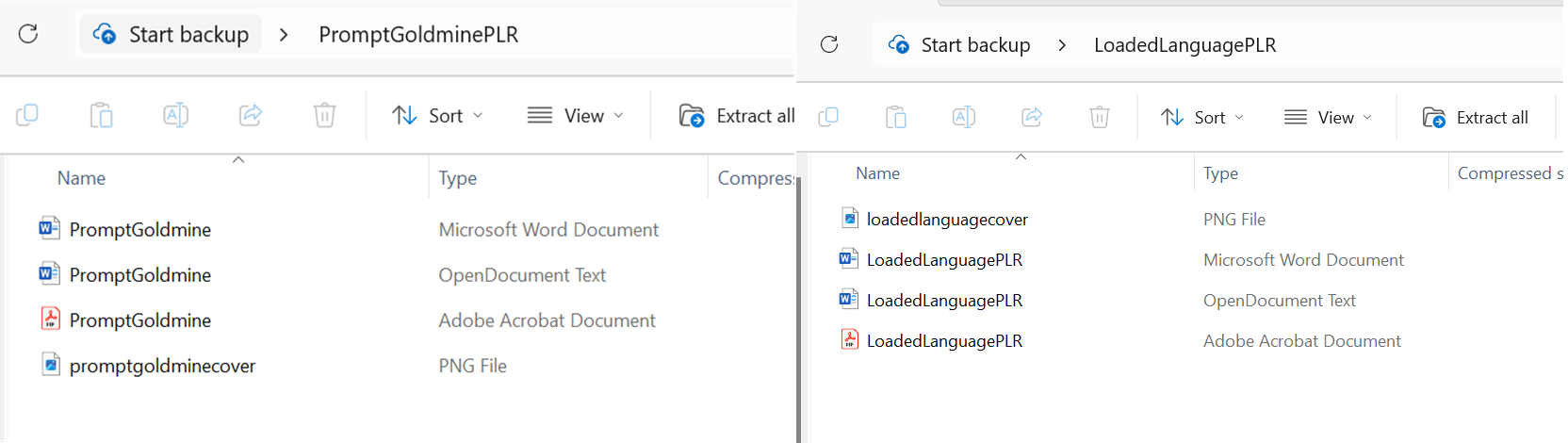 The first is product is "Prompt Goldmine" and the other is "Loaded Language". (You can read more about both products by scrolling down this page).